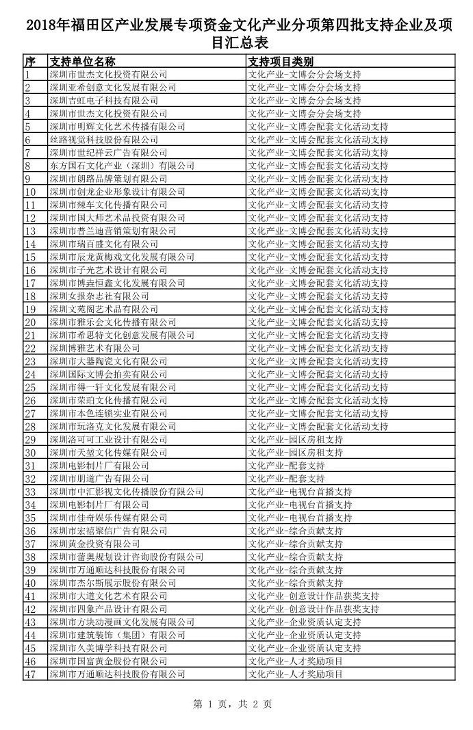核心提示:2018年12月17日,福田企服中心公布了2018年福田區(qū)產業(yè)發(fā)展專項資金文化產業(yè)分項第四批支持企業(yè)及項目匯總表。其中,深圳市亞泰國際建設股份有限公司、深圳市南利裝飾集團股份有限公司、深圳市大眾建設集團有限公司等建筑裝飾企業(yè)獲得該項專項資金支持。支持項目類別有建筑裝飾設計行業(yè)——綜合貢獻支持、人才獎勵支持、創(chuàng)意設計作品獲獎支持、企業(yè)資質認定支持、R&D投入支持。