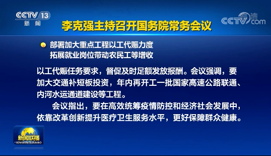 國(guó)務(wù)院總理李克強(qiáng)6月29日主持召開國(guó)務(wù)院常務(wù)會(huì)議,確定政策性、開發(fā)性金融工具支持重大項(xiàng)目建設(shè)的舉措,擴(kuò)大有效投資、促進(jìn)就業(yè)和消費(fèi);部署加大重點(diǎn)工程以工代賑力度,拓展就業(yè)崗位,帶動(dòng)農(nóng)民工等增收;決定開展提升高水平醫(yī)院臨床研究和成果轉(zhuǎn)化能力試點(diǎn),促進(jìn)提高醫(yī)療衛(wèi)生服務(wù)水平。