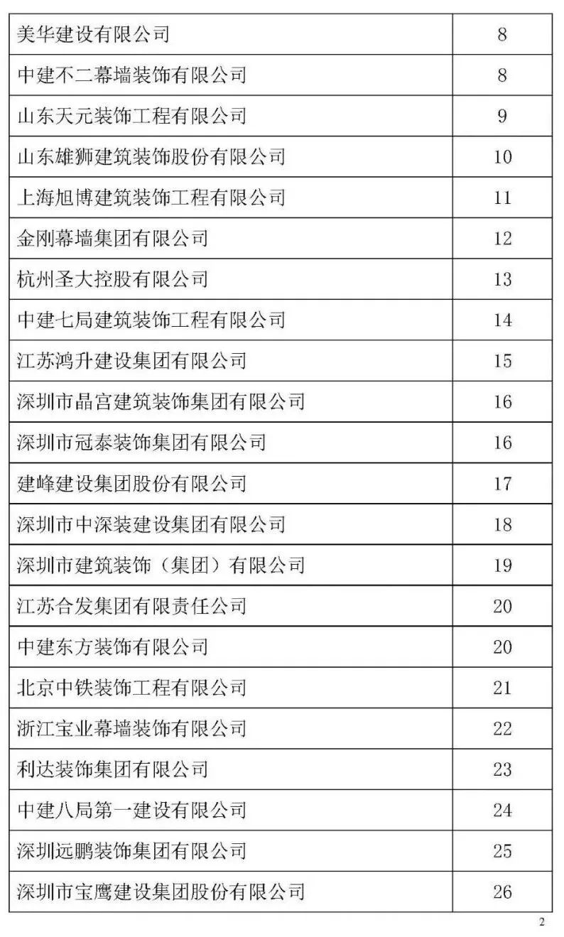 根據(jù)中裝協(xié)《關于開展2021年度中國建筑裝飾協(xié)會行業(yè)綜合數(shù)據(jù)統(tǒng)計工作的通知》(中裝協(xié) [2022]24號文件)及文件中所確定的工作原則和統(tǒng)計規(guī)則, 中國建筑裝飾協(xié)會組織開展了2021年度中國建筑裝飾行業(yè)綜合數(shù)據(jù)統(tǒng)計工作,此次綜合數(shù)據(jù)統(tǒng)計工作分為裝飾、幕墻、設計、建材四類,現(xiàn)將2021年度中國建筑裝飾協(xié)會行業(yè)綜合數(shù)據(jù)統(tǒng)計幕墻類結果名單予以公示,公示期7天。