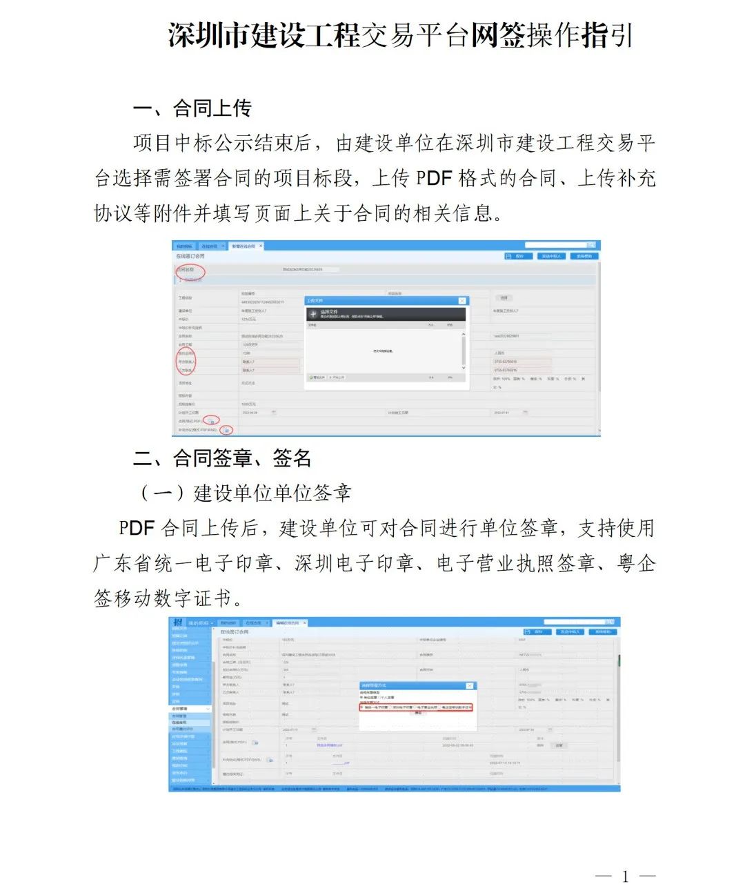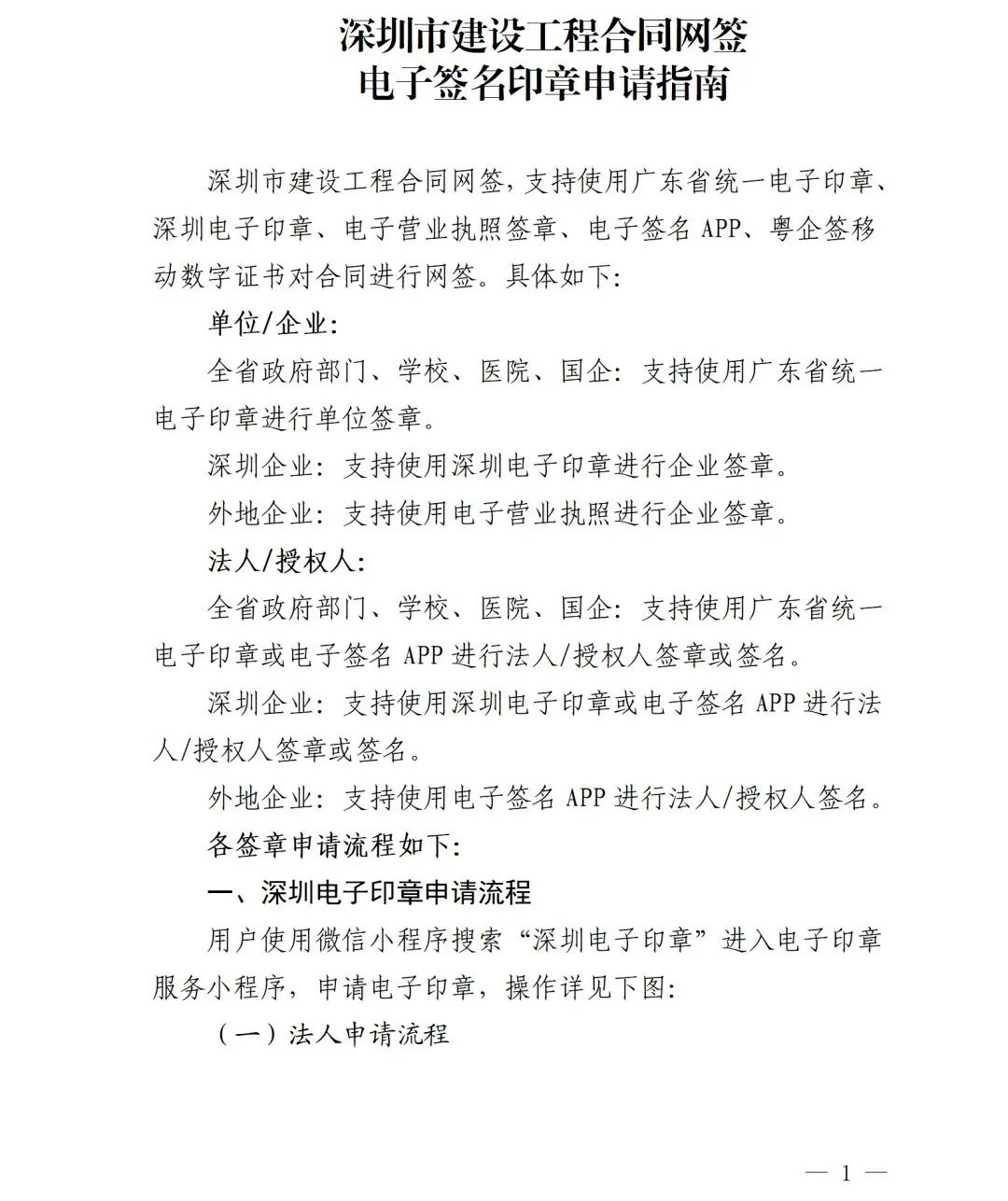 1.深圳市建設工程合同網簽電子簽名印章辦理指南