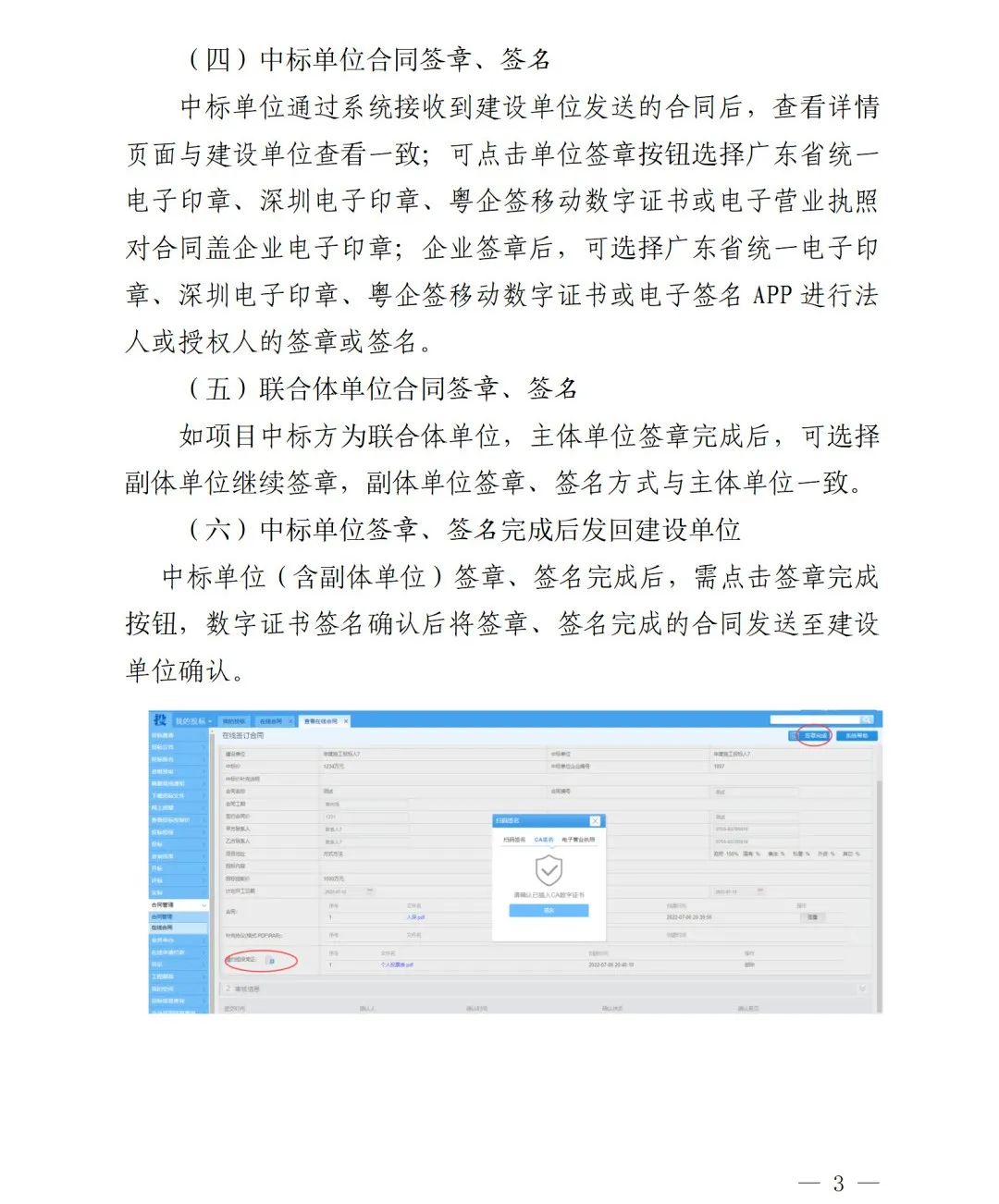 為貫徹落實《國務院關于開展營商環境創新試點工作的意見》(國發〔2021〕24號)、《廣東省住房和城鄉建設廳關于印發廣東省工程造價改革試點工作實施方案的通知》(粵建市函〔2021〕502號)和《深圳市人民政府關于印發市建設營商環境創新試點城市實施方案的通知》(深府〔2022〕13號)等文件要求,我局于2022年開展了建設工程施工合同網簽試點工作,目前已具備全面推行建設工程合同網簽的技術條件。根據《廣東省發展改革委等7部門關于加快推進招標投標全流程電子化工作的通知》(粵發改法規函〔2022〕1484號)的工作部署,現決定在我市全面推行建設工程合同網簽工作,有關事宜通知如下: