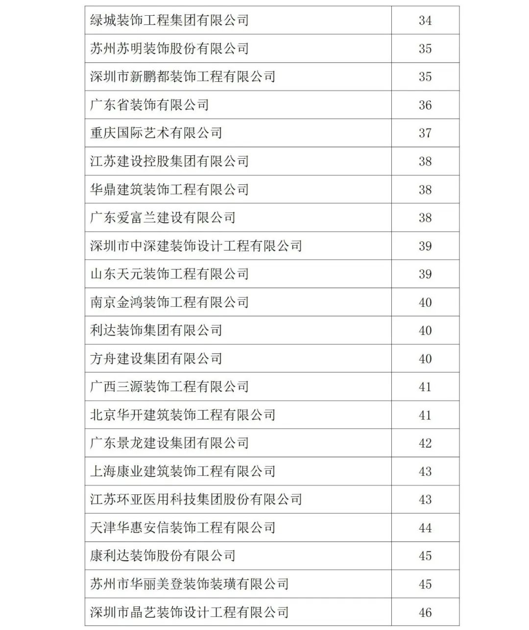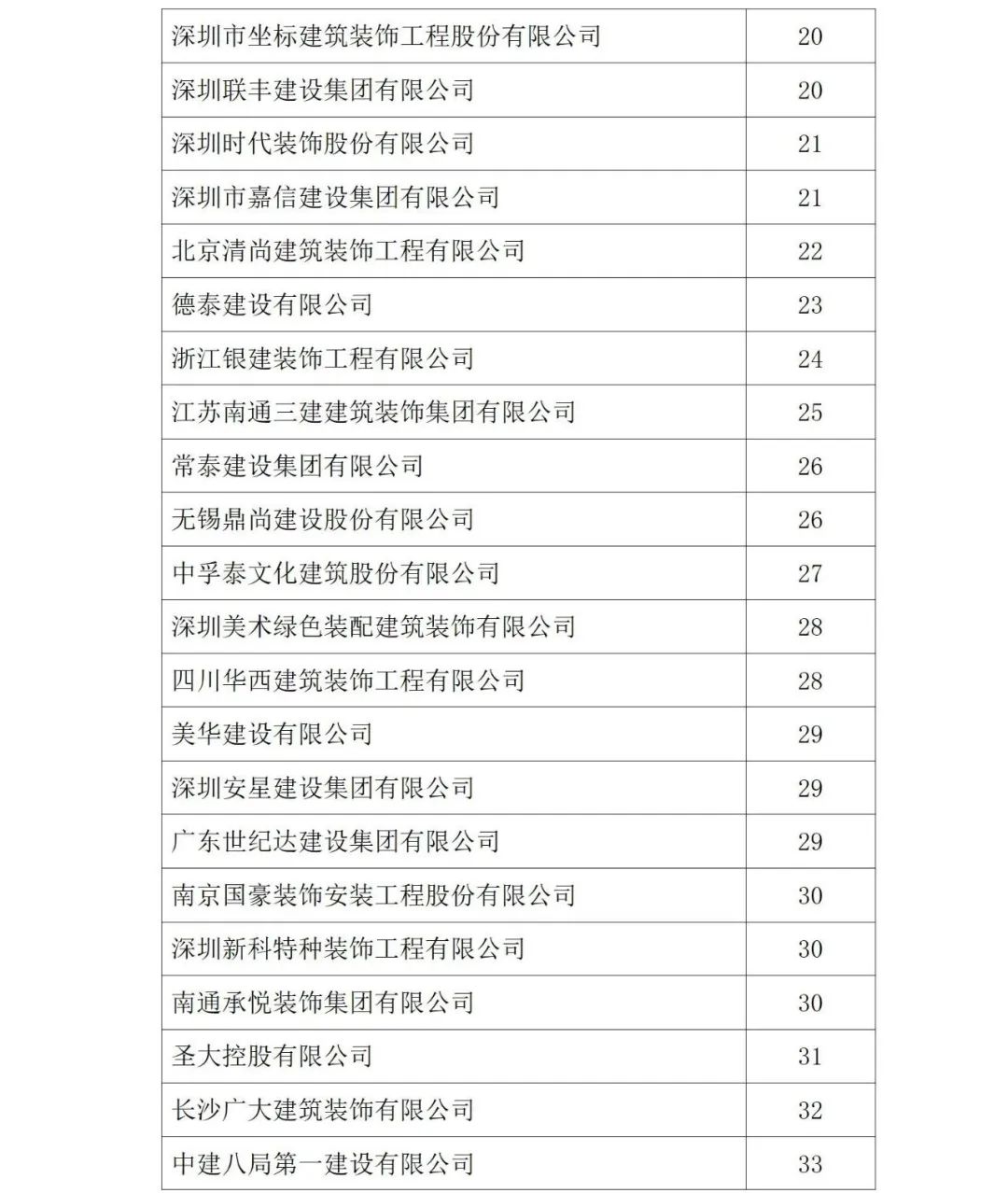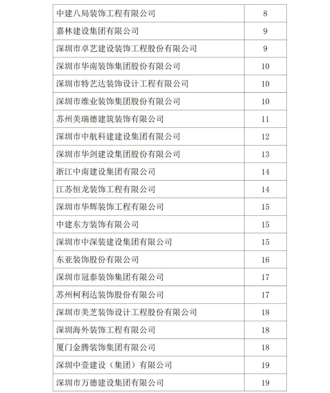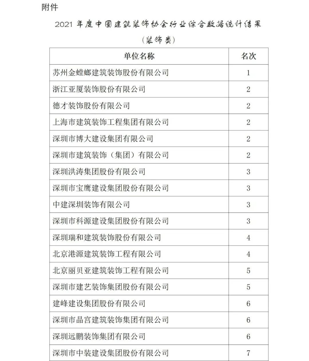 2021年度中國建筑裝飾協會行業綜合數據統計結果最終全名單公布