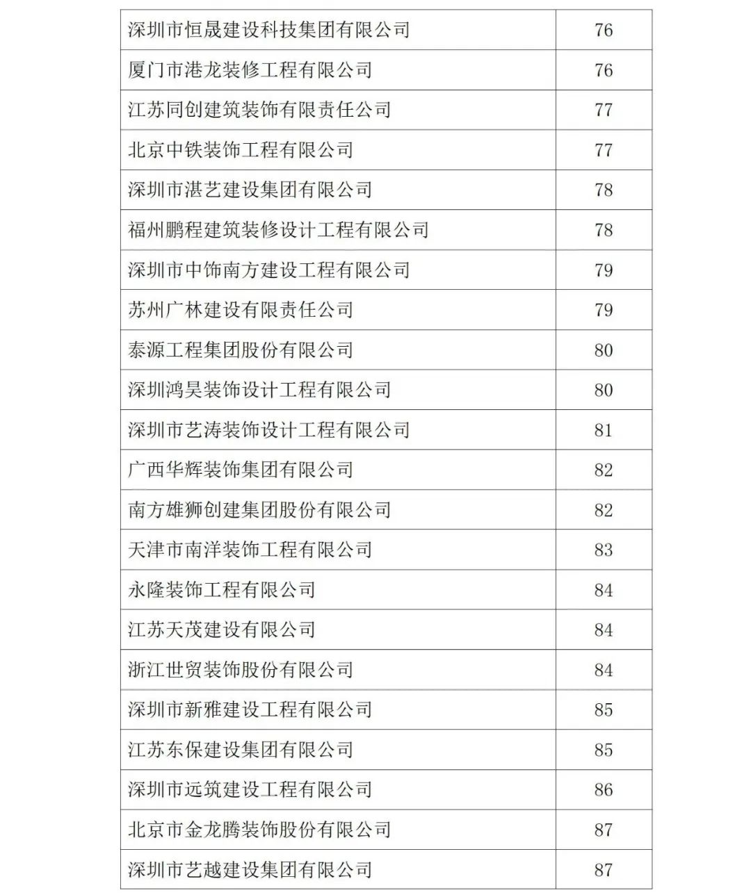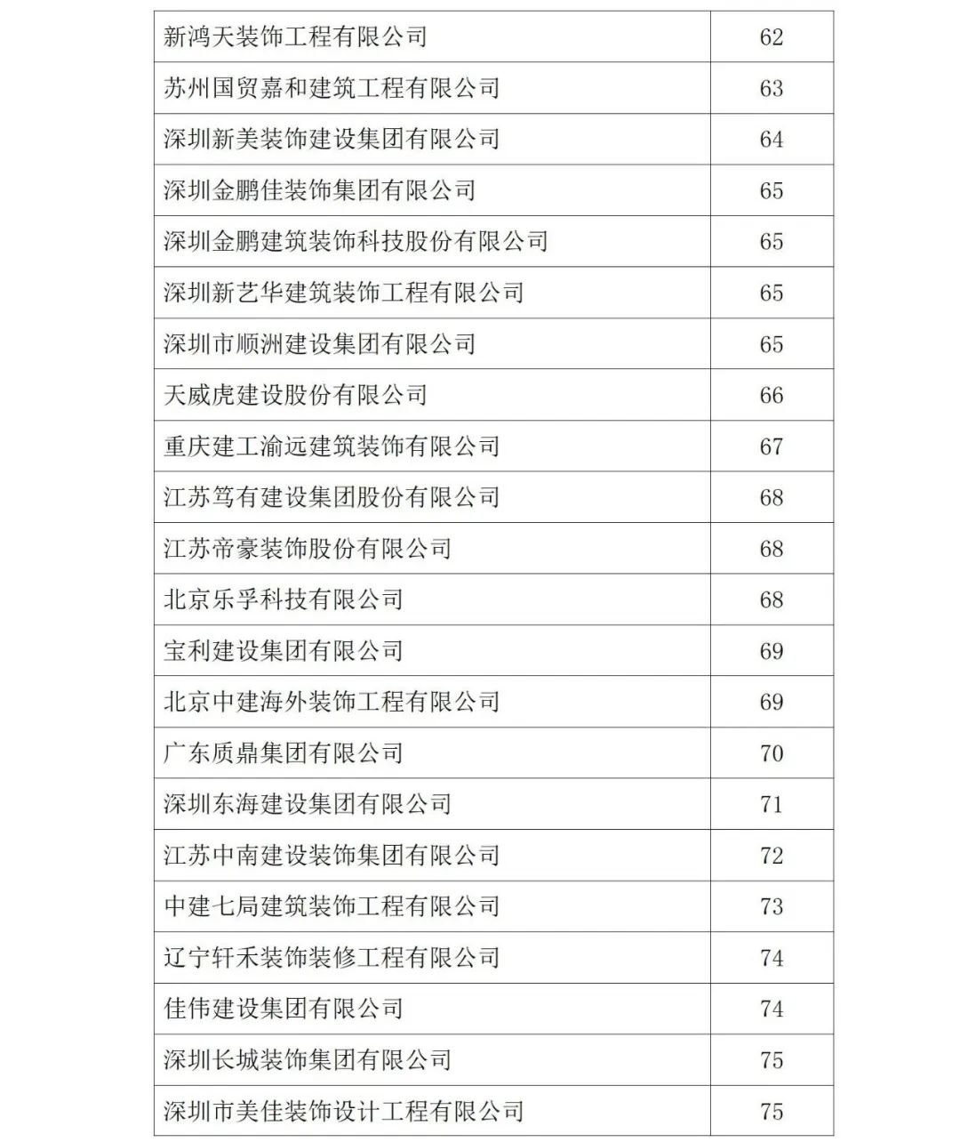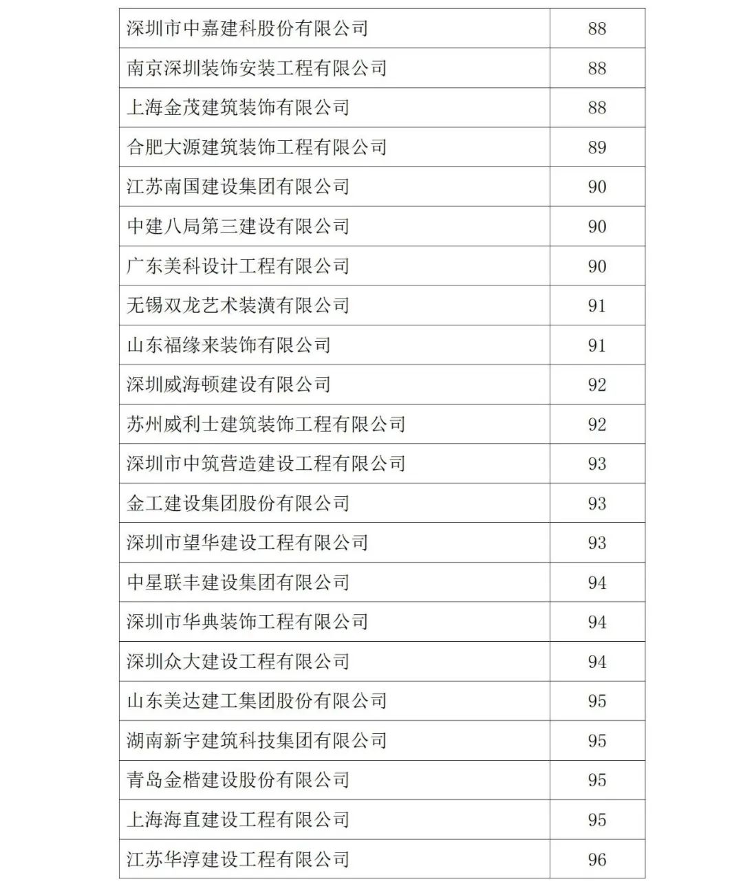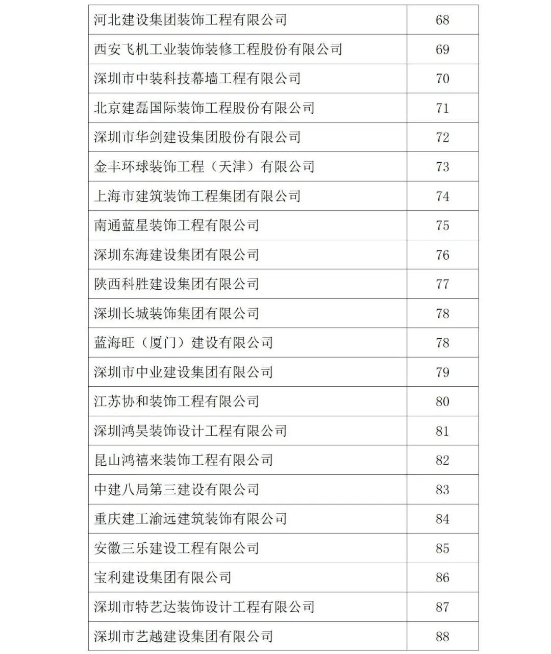 2021年度中國建筑裝飾協會行業綜合數據統計結果最終全名單公布