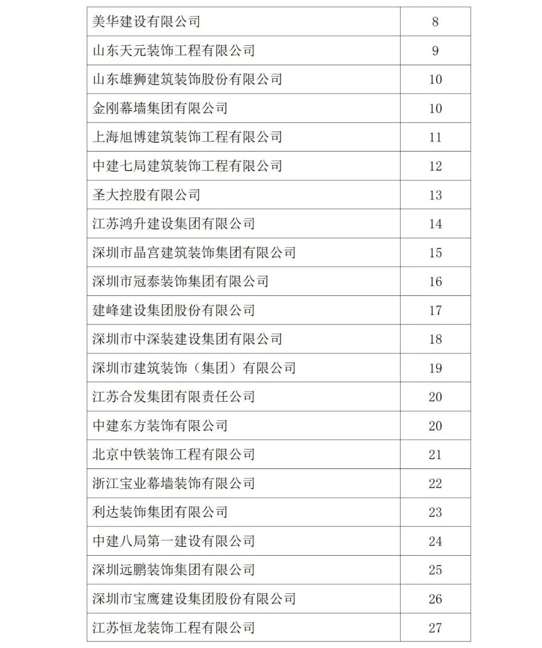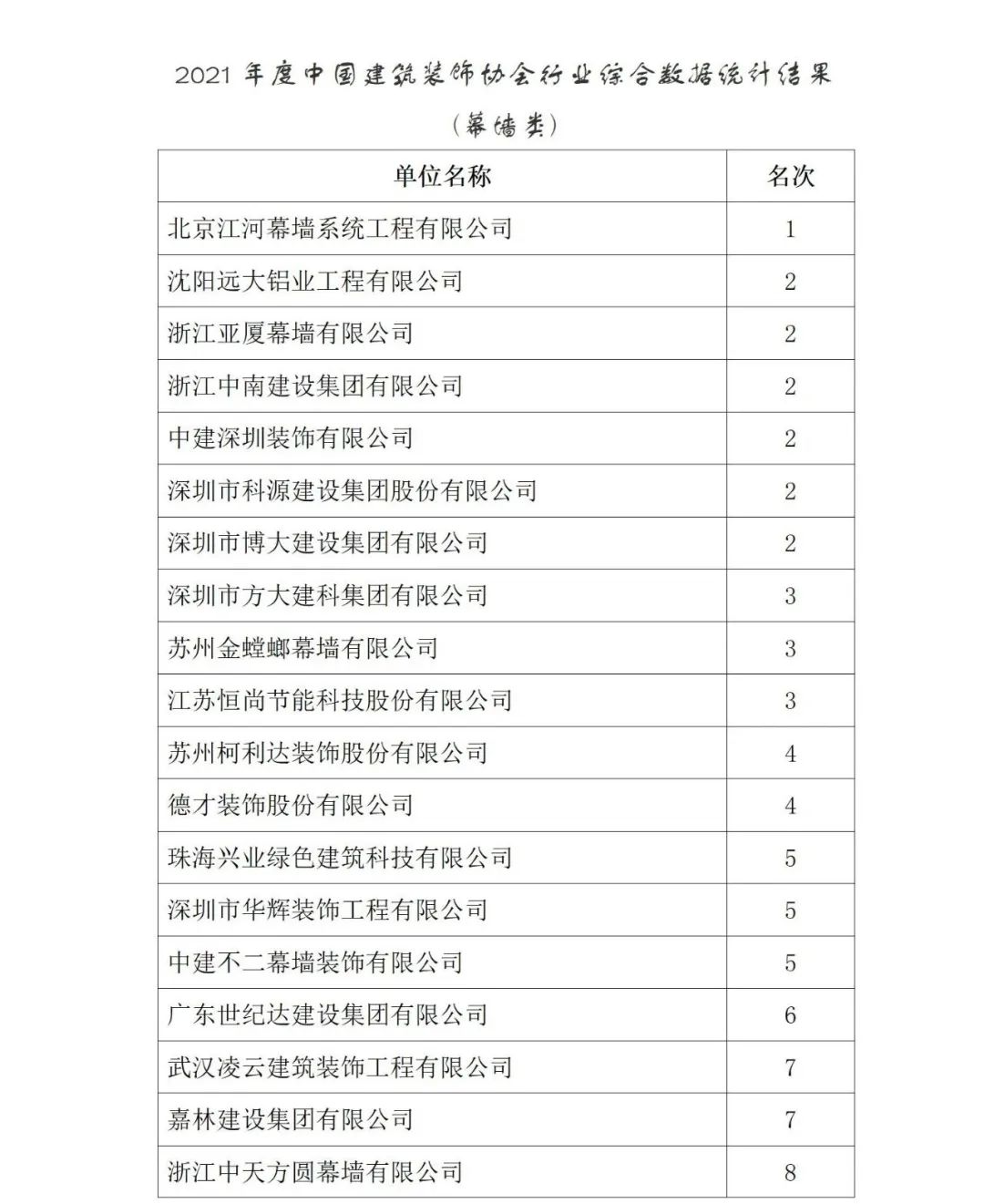 2021年度行業綜合數據統計分為裝飾、幕墻、設計、建材四類,現將2021年度建筑裝飾行業數據統計結果名單予以公告。