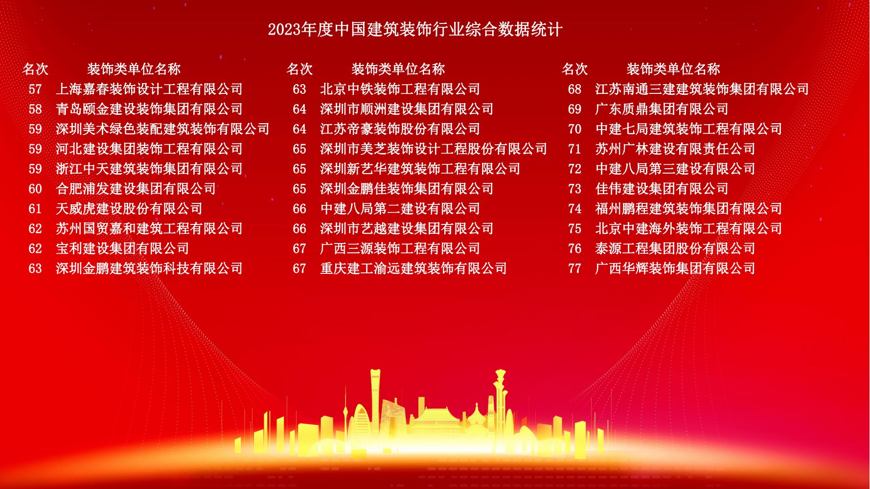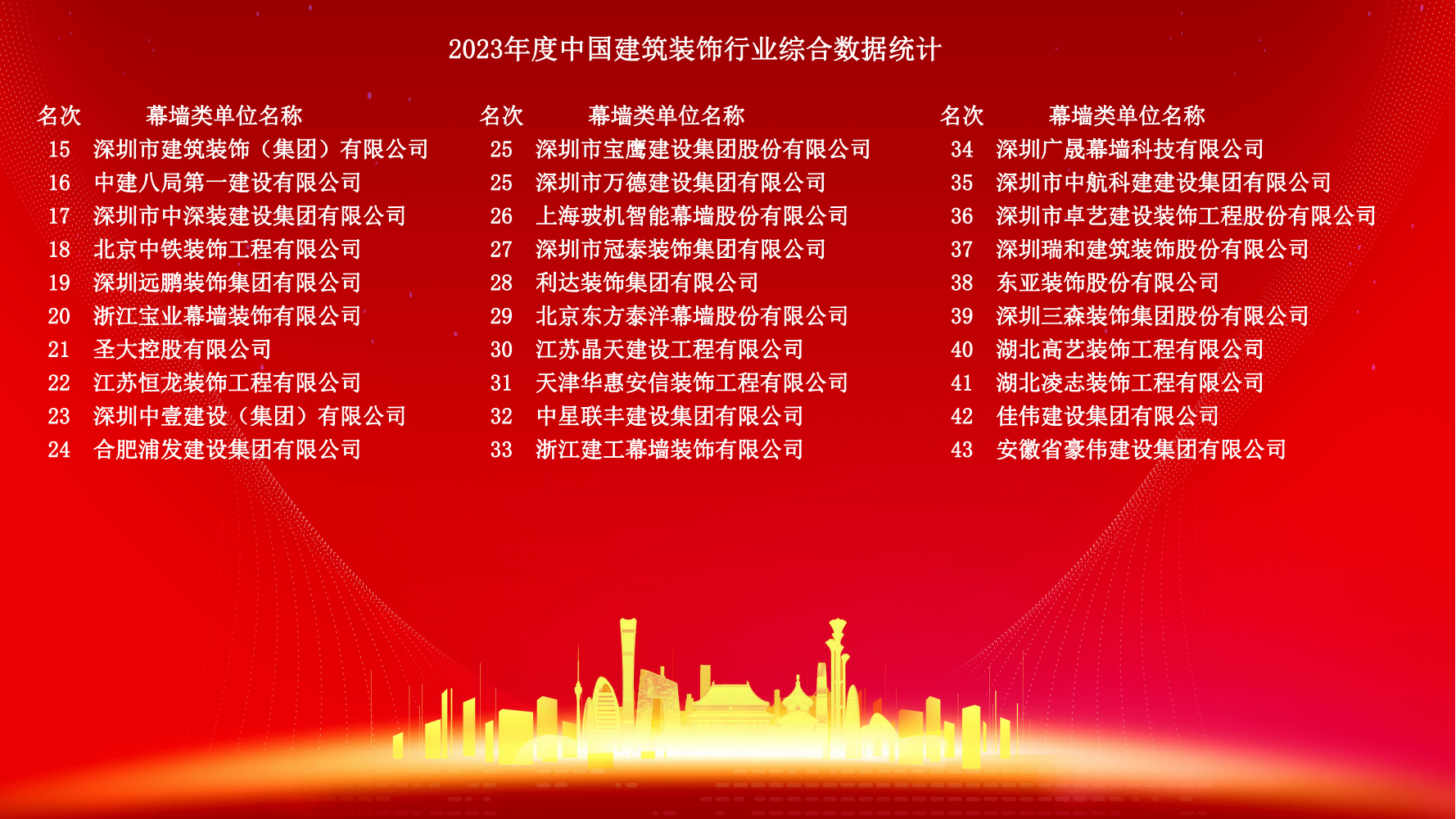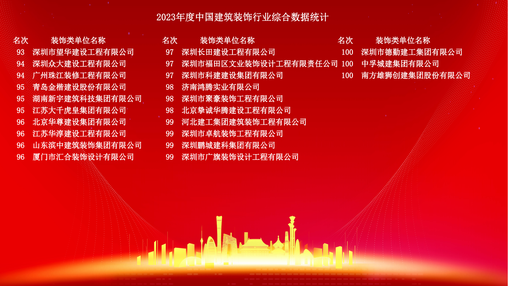 12月10日,2023年度中國建筑裝飾協會行業綜合數據統計正式發布。詳細名單如下: